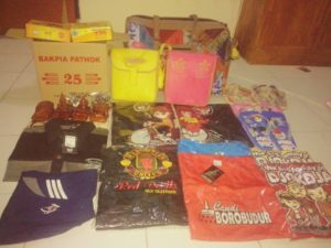 Itu sebenernya foto yang lagi bawa tas di ambil saat bunbun pulang ke jakarta pas liburan tahun baru lalu, kurang lebih gambar dan isinya sama semua seperti itu, malah sebenernya lebih banyak dari itu semua, sayangnya waktu itu masih belum berani buat narsis minta fotoin sama Bang Soleh. Hahahaha 😀