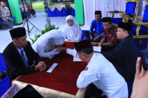 Setelah itu, Mas soleh dan bunbun beserta wali dan para saksi nya menandatangani surat dan buku nikah.