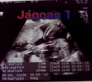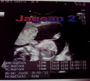 Tanggal 03 November 2014, hari ini di saat itu adalah saat jadwalnya kontrol si kembar yang sudah hampir memasuki usia kandungan 6 bulan atau 23 minggu. Saat di USG ternyata kata dokternya keduanya berjenis kelamin laki2. Karena kata dokternya, ini ‘MONAS’ nya sudah terlihat dengan jelas banget. Wah, saat itu rasanya seneng banget denger kabar dan penjelasan dari dokternya. Sangat berharap sekali sampai saat lahiran nanti keduanya bener2 berjenis kelamin laki2 semua.