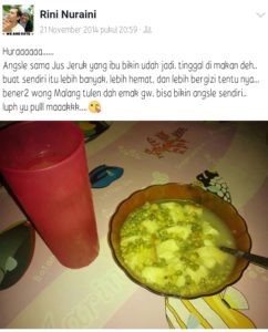 Tanggal 21 November 2014, tiba2 hari ini lagi pengen banget makan angsle. Kayaknya penjual angsle di Jakarta itu masih jarang banget, penjual angsle itu kebanyakan di Malang. Walaupun begitu bunbun tetep sms ibu, nanyain di sekitar rumah ada yang jual angsle atau ga, dan ternyata jawaban ibu itu kalo di rumah yang ada penjual skuteng, yang jual angsle kebanyakan di Malang. Yak an ga mungkin juga bunbun harus jauh2 pergi ke Malang cuman buat makan angsle doang. Duuhh, gimana ya ini, padahal lagi pengen banget alias ngidam angsle banget ini. Trus akhirnya sama ibu mau dibikinin sendiri aja. Ntar malem pas bunbun pulang dari proyek udah jadi dan langsung siap untuk disantap angsle nya. Aiihhh, seneng banget deh saat itu ngedengernya. Jadi ga sabar rasanya, dan pengen cepet2 pulang ke rumah jadinya. Tapi bunbun masih harus bersabar sedikit sampai nunggu saatnya tiba di rumah. Akhirnya pas jam 21.00an bunbun udah sampai di rumah, dan pas masuk di kamar udah langsung di sediain dan disiapin sama ibu Es Jeruk + Angsle buatan ibu sendiri. Hmmmm, yummy.
