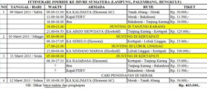 Ini adalah Ittinerari selama kita Joyride ke Divre 3 Sumatra.