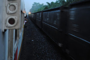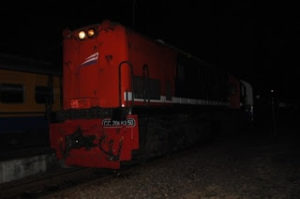Selama di KA S2 Sriwijaya, kita berlima harap-harap cemas apakah kita bisa sampai di Kertapati tepat waktu agar bisa mengejar KA Serelo ke Lubuk Linggau. Karena kita sempet nanya ke Pak Masinis, kata beliau kemungkinan kereta ini akan terlambat 1 sampai 2 jam sampai di Stasiun Kertapati dari jadwal yang direncanakan. Kalo di jadwal sampai Stasiun Kertapati pukul 04.53 WIB. Pak Masinisnya menyarankan kalo kita mau ngejar KA Serelo, sebaiknya kita turun di Stasiun Prabumulih. Setelah kita koordinasi dengan RF Kertapati, mereka bilang kalo sampai di Stasiun Prabumulih masih pukul 05.00 WIB maka kita bisa melanjutkan perjalanan sampai Stasiun Kertapati. Tetapi jika pukul 07.00 WIB baru masuk Stasiun Prabumulih, maka sebaiknya kita turun di Stasiun Prabumulih untuk mengejar KA Serelo ke Lubuk Linggau. Dan Alhamdulillah, pukul 05.00 WIB, KA S2 Sriwijaya tiba di Stasiun Prabumulih. AKhirnya kita dapat melanjutkan perjalanan hingga Stasiun Kertapati. Pukul 06.00 WIB Lepas Stasiun Payakabung, KA S2 Sriwijaya silang dengan KA Babaranjang. (Fotografer : Inuarif)