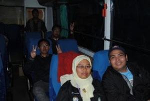 Pukul 16.00 WIB, Kapal tiba di Dermaga 1 Pelabuhan Bakauheni dan kita langsung naik Bus yang saat itu masih berada di dalam kapal untuk menuju ke Stasiun Tanjung Karang dengan harga Rp. 30.000,-. Karena bus nya tidak sampai Stasiun , maka kita turun di Way Halim dan dilanjutkan dengan menggunakan angkot dengan ongkos sebesar Rp. 2000,-. Ini adalah foto saat kita berada di dalam bus menuju ke Stasiun Tanjung Karang.