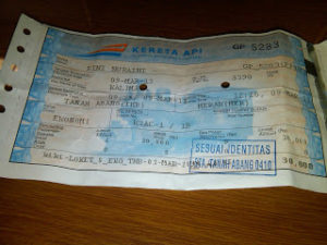 Satu bulan sebelum pemberangkatan, kita hunting tiket kereta yang ada di wilayah Divre 3 Sumatra Selatan. Karena kebetulan saat itu ada promo tiket Valentrain dari PT KAI yang bertepatan dengan hari valentine kita berhasil mendapatkan tiket promo tersebut untuk kereta Limeks Sriwijaya Eksekutif dan Sindang Marga Eksekutif seharga Rp. 50.000,-.