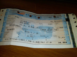 Satu Minggu sebelum hari pemberangkatan, kita mengadakan kopdar yang kedua, sekaligus untuk membeli tiket KA Ekonomi AC Kalimaya untuk tanggal 09 Maret 2013 Relasi Tanah Abang-Merak dan untuk tanggal 12 Maret 2013 Relasi Merak-Tanah Abang, yang saat itu harga nya juga masih harga promosi Rp. 30.000,-.